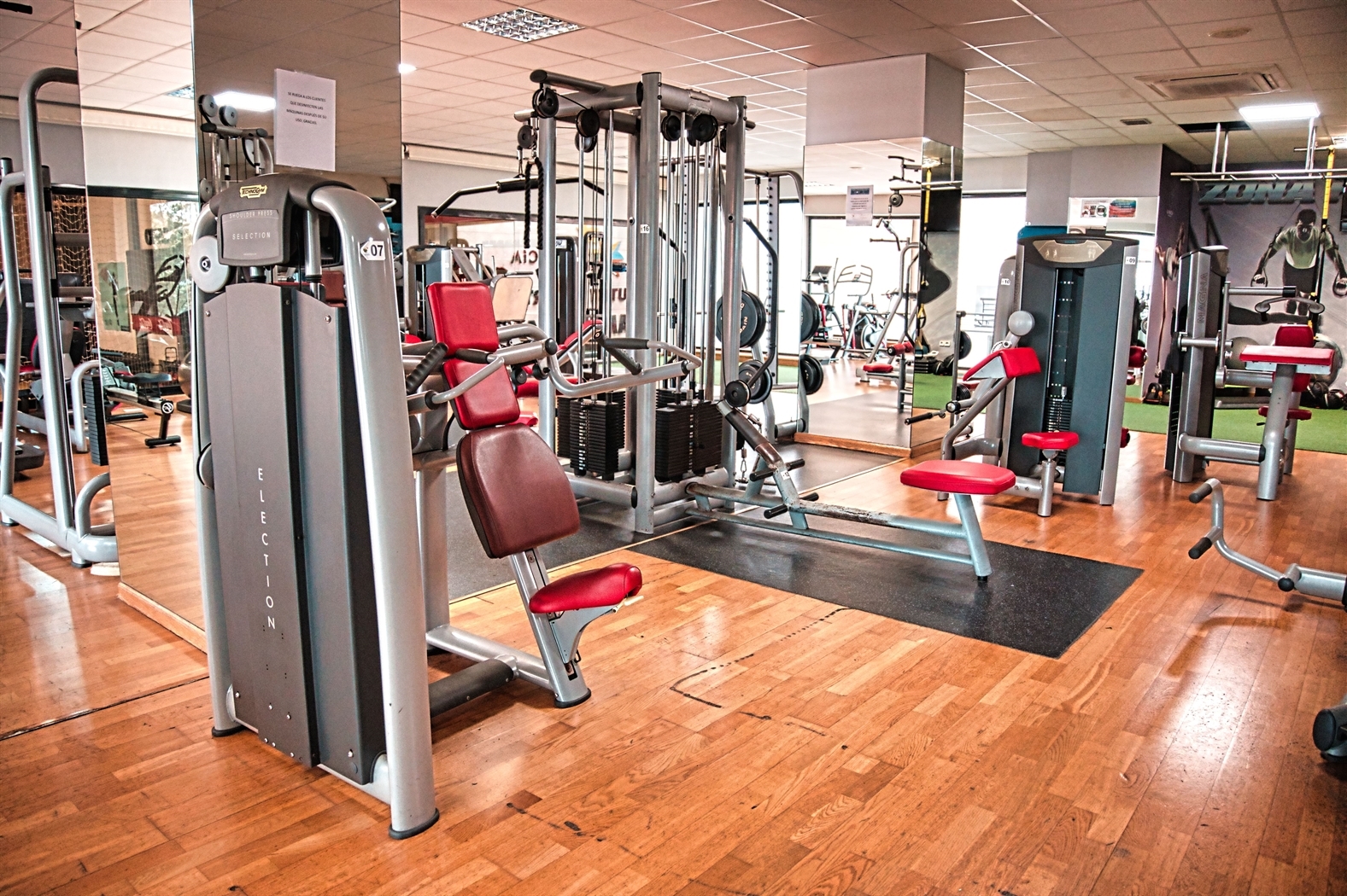 • Zona de cardio- fitness, musculación y peso libre (en esta sala se imparten clases de Gap, Abdominales y Tablas de Estiramientos).