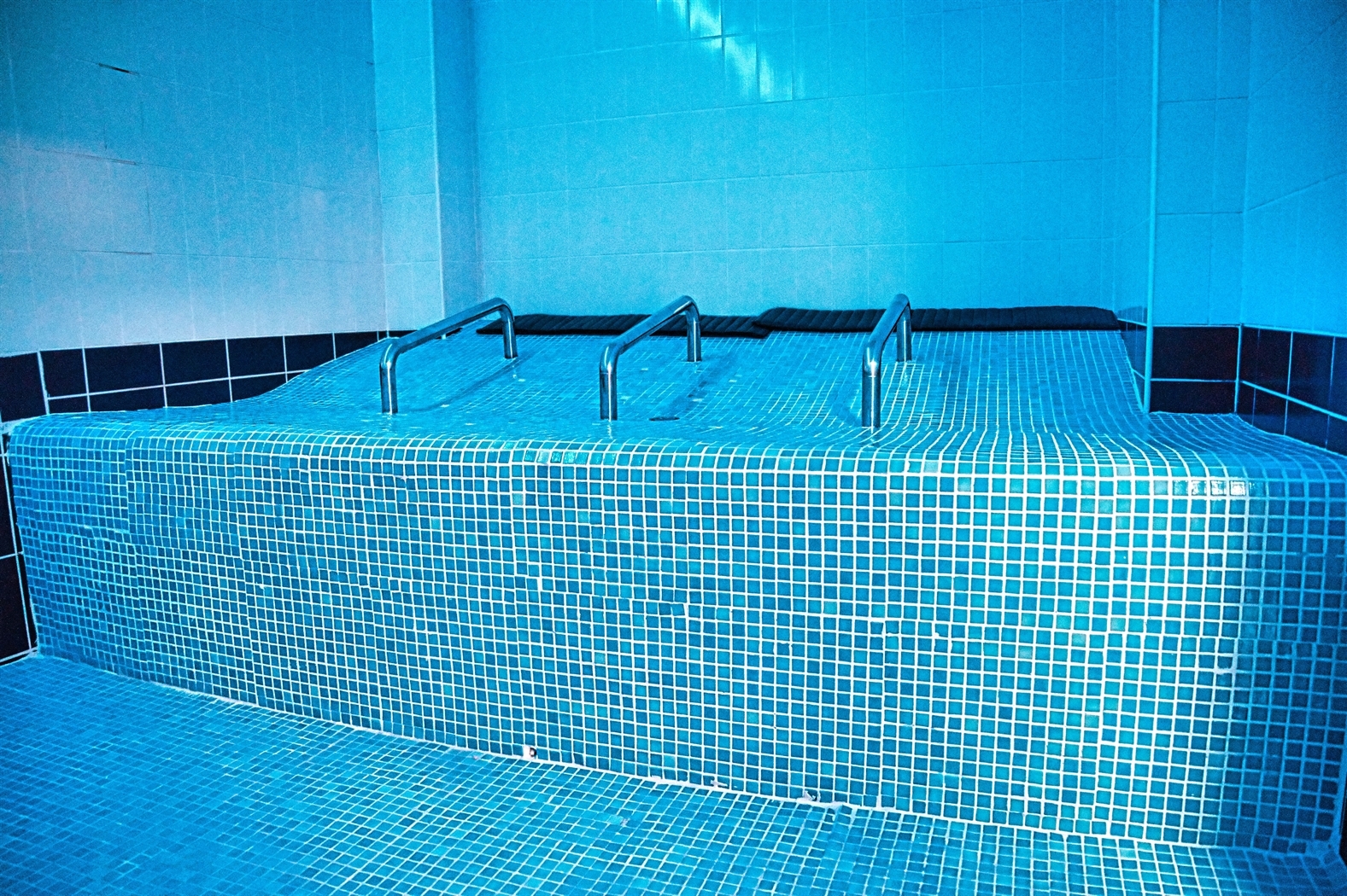 • Pediluvio equipado con un sistema de chorros a distintas temperaturas y cantos rodados o pequeñas piedras de textura lisa, para caminar sobre ellas